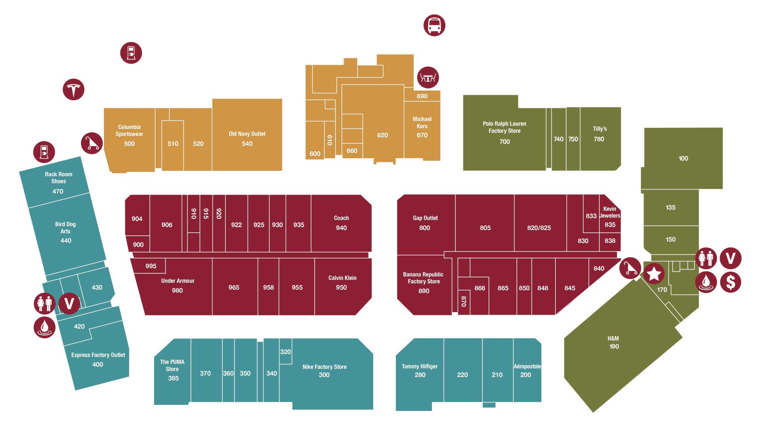 – Coach: If you’re in the market for luxury handbags, wallets, and accessories, Coach is the place to shop.